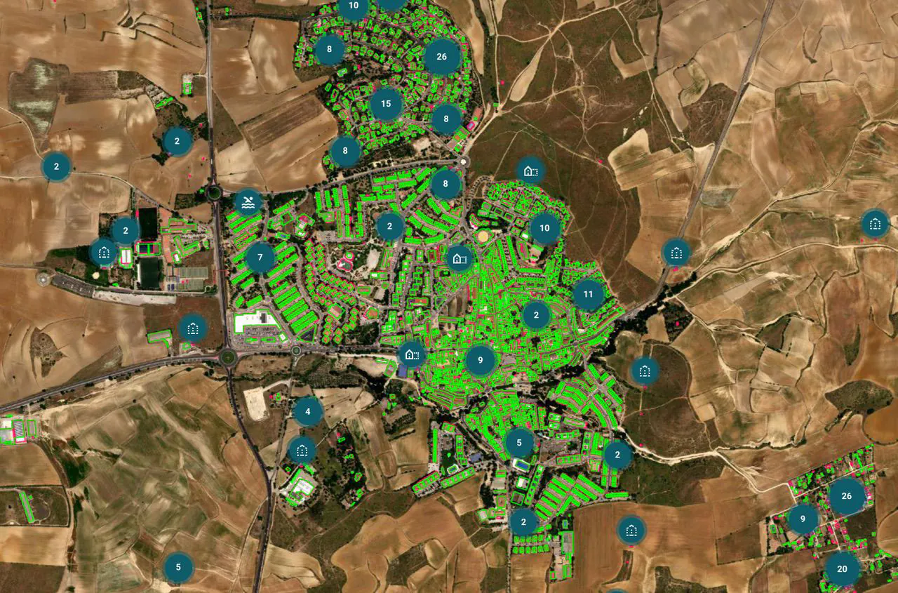 Mediante técnicas de análisis geospacial y procesos avanzados de integración de datos, detectamos discrepancias entre la realidad urbanística y los registros municipales a partir de imágenes satelitales, ortofotos y datos urbanos oficiales.